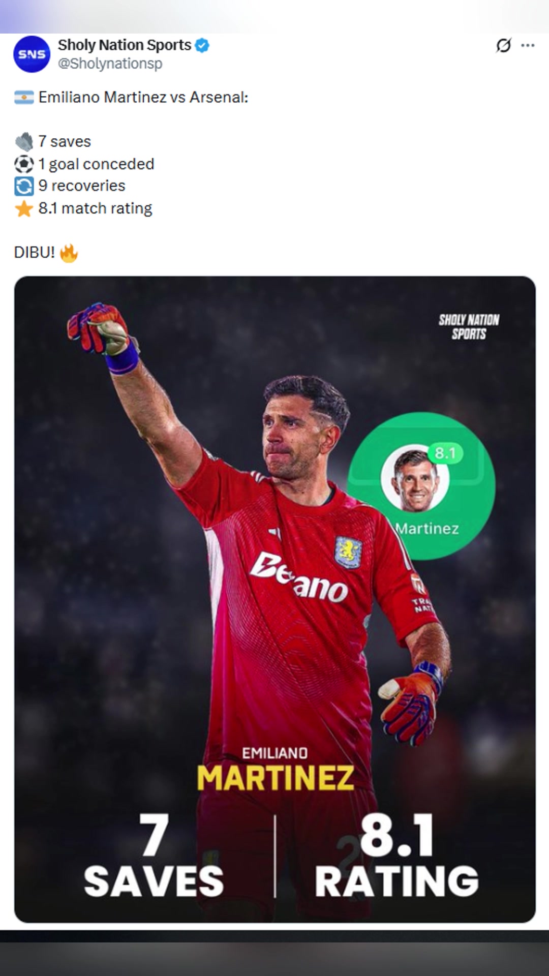 全场7次扑救大马丁赛