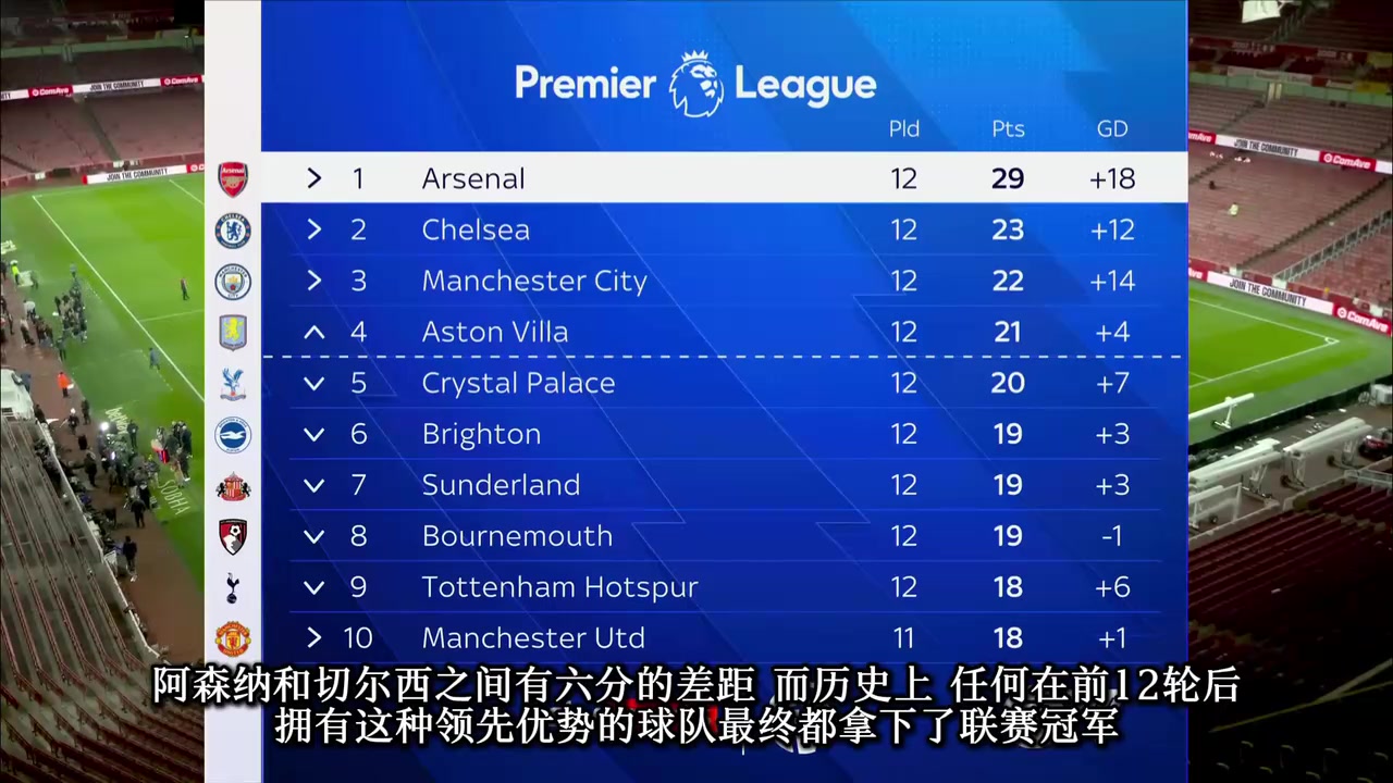 6分领跑阿森纳4-1热刺